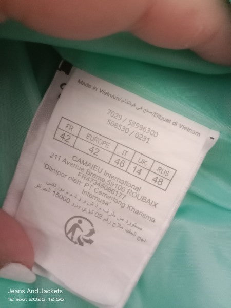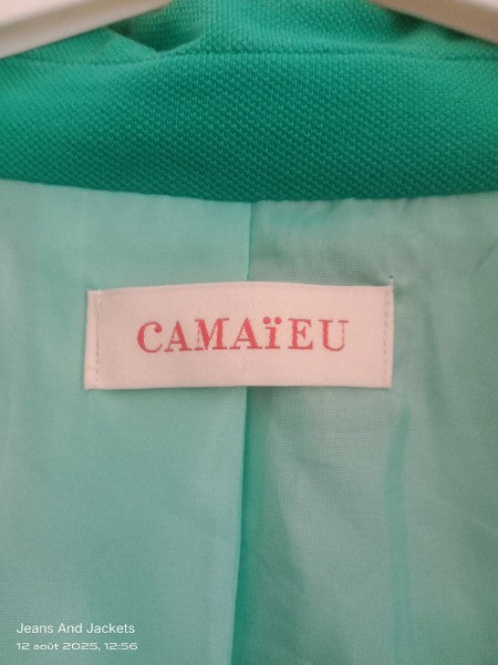 Adoptez un style audacieux avec ce blazer vert Camaïeu en taille 42. Raffiné et en très bon état, il se distingue par ses deux poches à rabat latérales, parfaites pour allier praticité et charme. Une pièce qui rehaussera votre allure avec assurance et originalité.