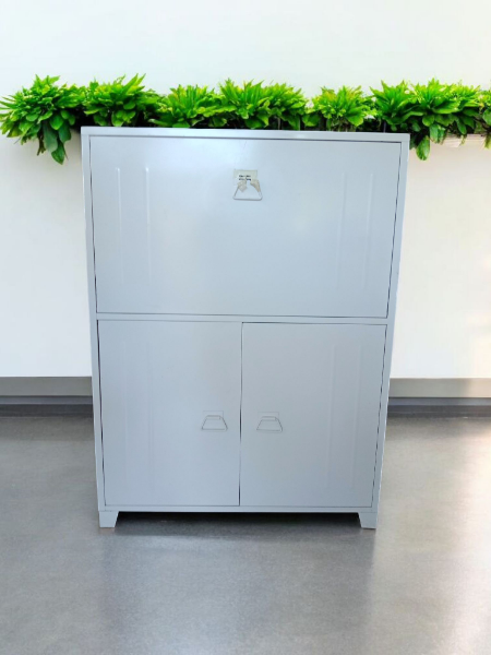 Ce bureau gain de place révolutionnaire défie les conventions avec sa structure métallique gris clair qui se fixe directement au mur, libérant votre espace au sol. Osez l'efficacité avec ses deux portes inférieures cachant de multiples rangements et son plan de travail escamotable qui apparaît et disparaît selon vos envies. Pour les rebelles de l'organisation qui refusent de sacrifier le style à la fonctionnalité. Parfait pour les petits espaces, ce meuble malin libère votre pièce quand vous n'en avez plus besoin. Petit détail : la poignée d'abaissement du plan de travail présente quelques marques de caractère, mais ça n'affecte pas sa fonctionnalité. L'ami idéal des appartements citadins !