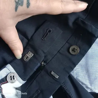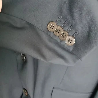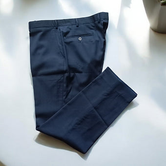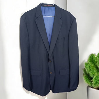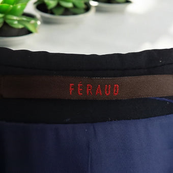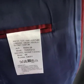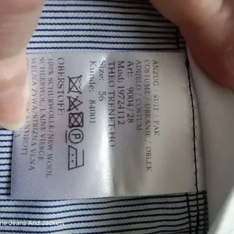Présentation du costume haut de gamme Louis Féraud Super 100's, doté d'un tissu en laine luxueux dans une couleur bleu marine classique. Cet ensemble sophistiqué comprend un pantalon (Mod 19724112 THEO TRENET -HO) avec un entrejambe de 80 cm et une taille 56, ainsi qu'une veste assortie (Mod 19420212 MICHEL MONET -EXHO) en taille 58. Fabriqué avec de la laine vierge de haute qualité. , cet ensemble est la combinaison parfaite de style et de confort, ce qui en fait un ajout polyvalent à toute garde-robe. Élevez votre look professionnel ou ajoutez une touche d'élégance à tout événement formel avec le Costume Louis Feraud Super 100's de Ressourcerie Jeans And Jackets.