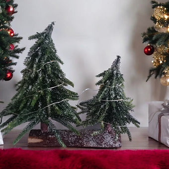 Ajoutez une touche de charme rustique à votre maison avec cette magnifique Décoration lumineuse. Composée d'une bûche de bois avec deux arbres à feuilles persistantes, cette pièce est ornée d'une guirlande lumineuse scintillante qui apportera une atmosphère chaleureuse et confortable à n'importe quel espace. Le premier arbre mesure environ 30 cm de haut, tandis que le second mesure environ 20 cm de haut, ce qui en fait la taille parfaite pour être exposé sur une cheminée, une étagère ou une table. Cet article est tout neuf et ajoute une jolie touche festive à votre décoration intérieure. Apportez la magie des vacances dans votre maison avec cette superbe Décoration lumineuse.