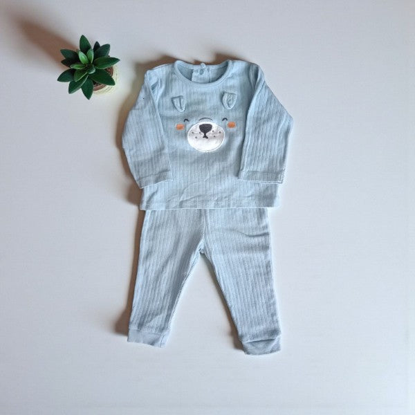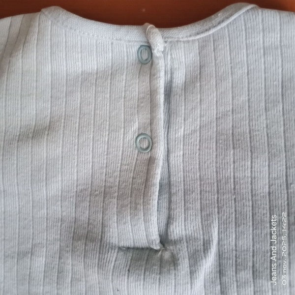 Ensemble pyjama Tex en coton pur, parfait pour les nuits douces de bébé. Conçu en 100% coton naturel, ce pyjama offre confort et respirabilité pour un sommeil paisible. La teinte bleu apaisante crée une atmosphère sereine. Taille 6 mois. Article en excellent état, prêt à accompagner les plus petits vers de beaux rêves.