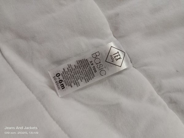 Offrez à votre bébé un cocon tout doux avec cette gigoteuse blanche Tex, taille 0-6 mois. Facile à enfiler grâce à son zip et ses pressions aux épaules, elle garantit des nuits confortables et sereines. En très bon état, elle allie praticité et douceur pour le plus grand bonheur des tout-petits.