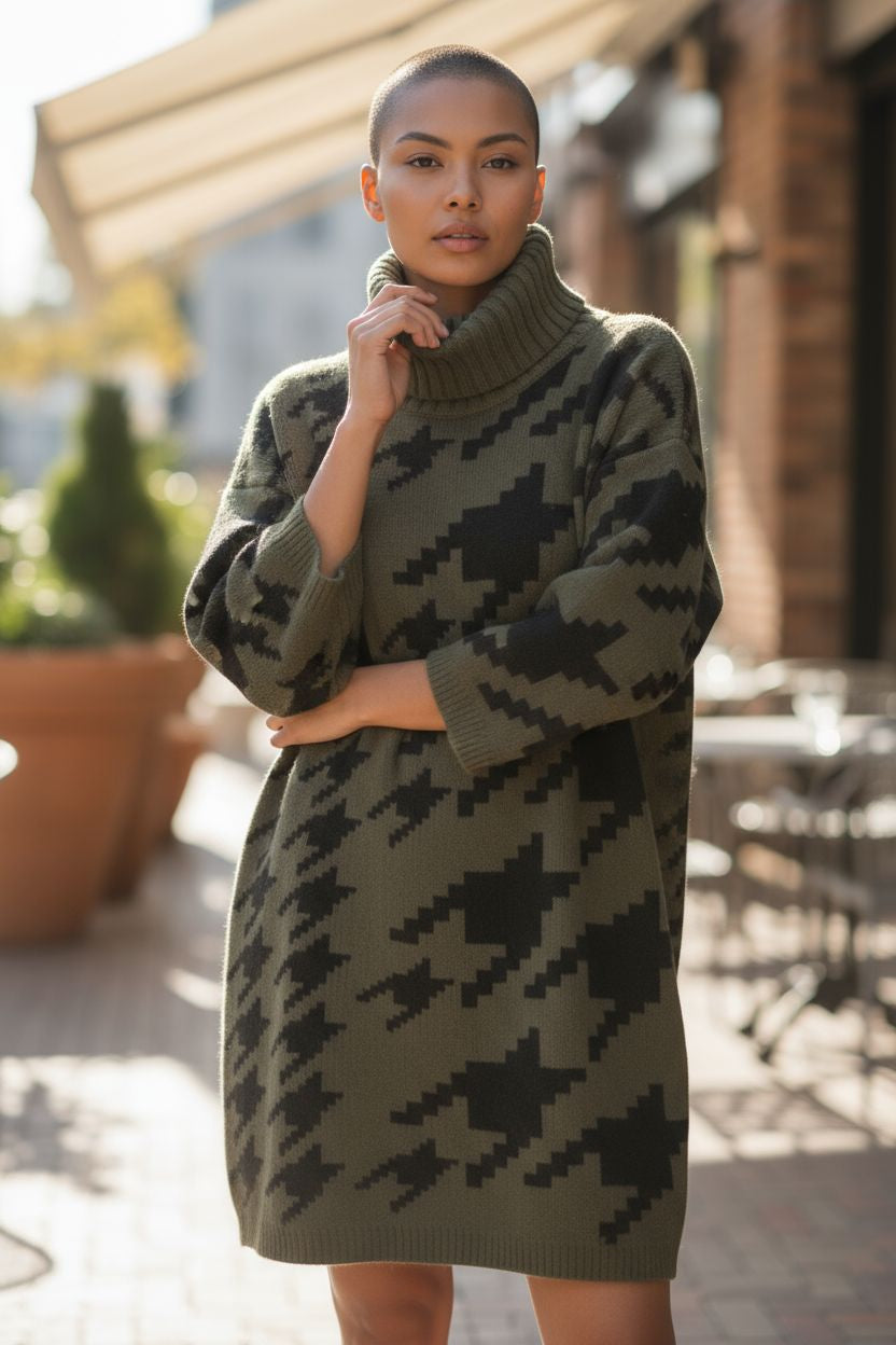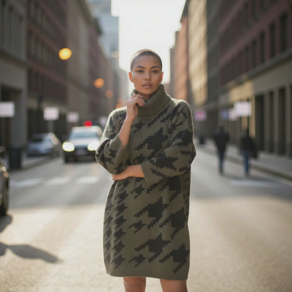 Ajoutez une touche d’élégance décontractée à votre garde-robe avec ce pull tunique vert foncé et noir. Ses manches 3/4 et son col roulé large vous enveloppent de confort tout en restant stylées. Taille unique, il s’adapte parfaitement pour une allure à la fois cosy et originale. En bon état, il est prêt à vous accompagner dans toutes vos aventures avec une dose de charme pétillant !
