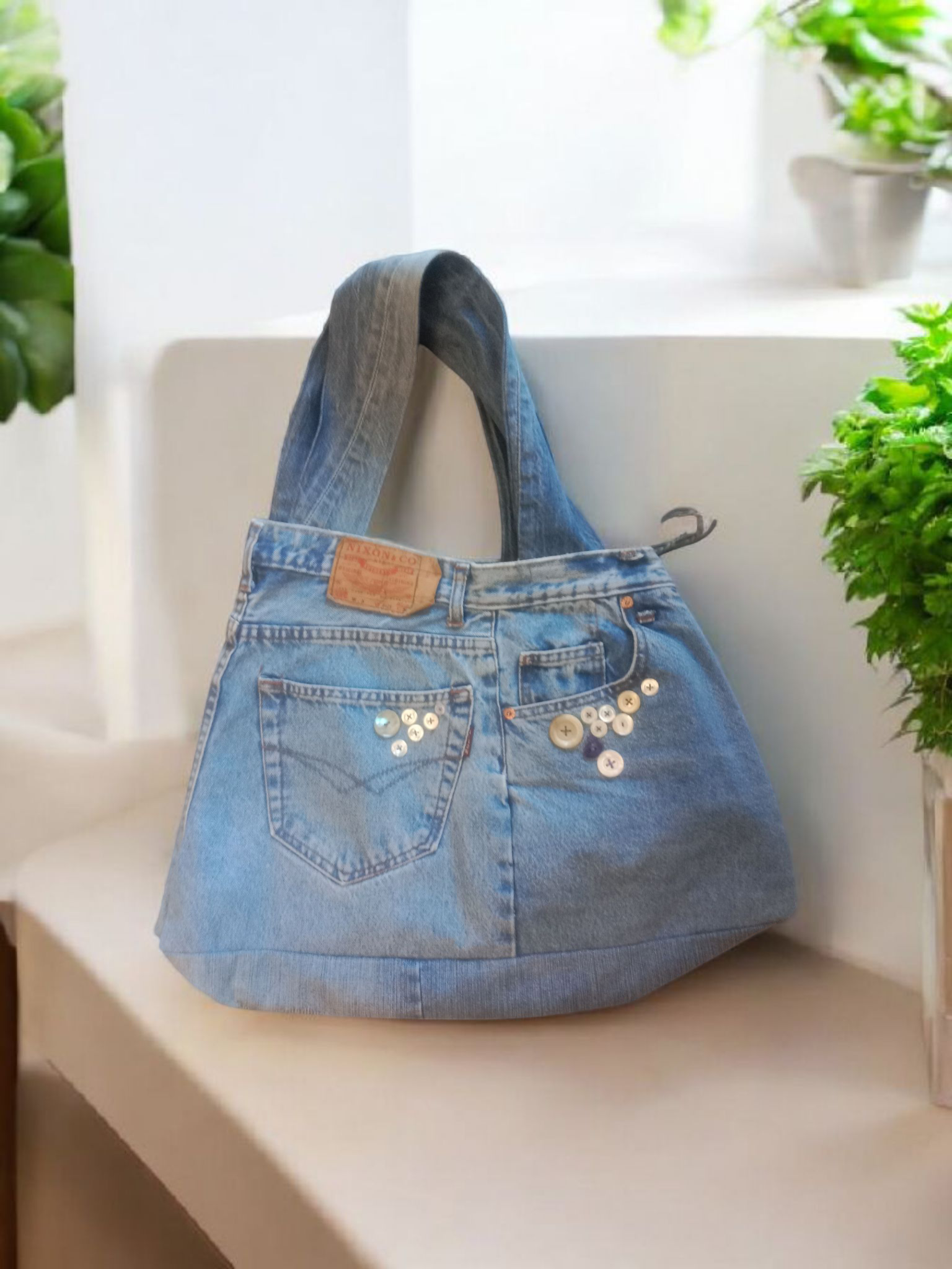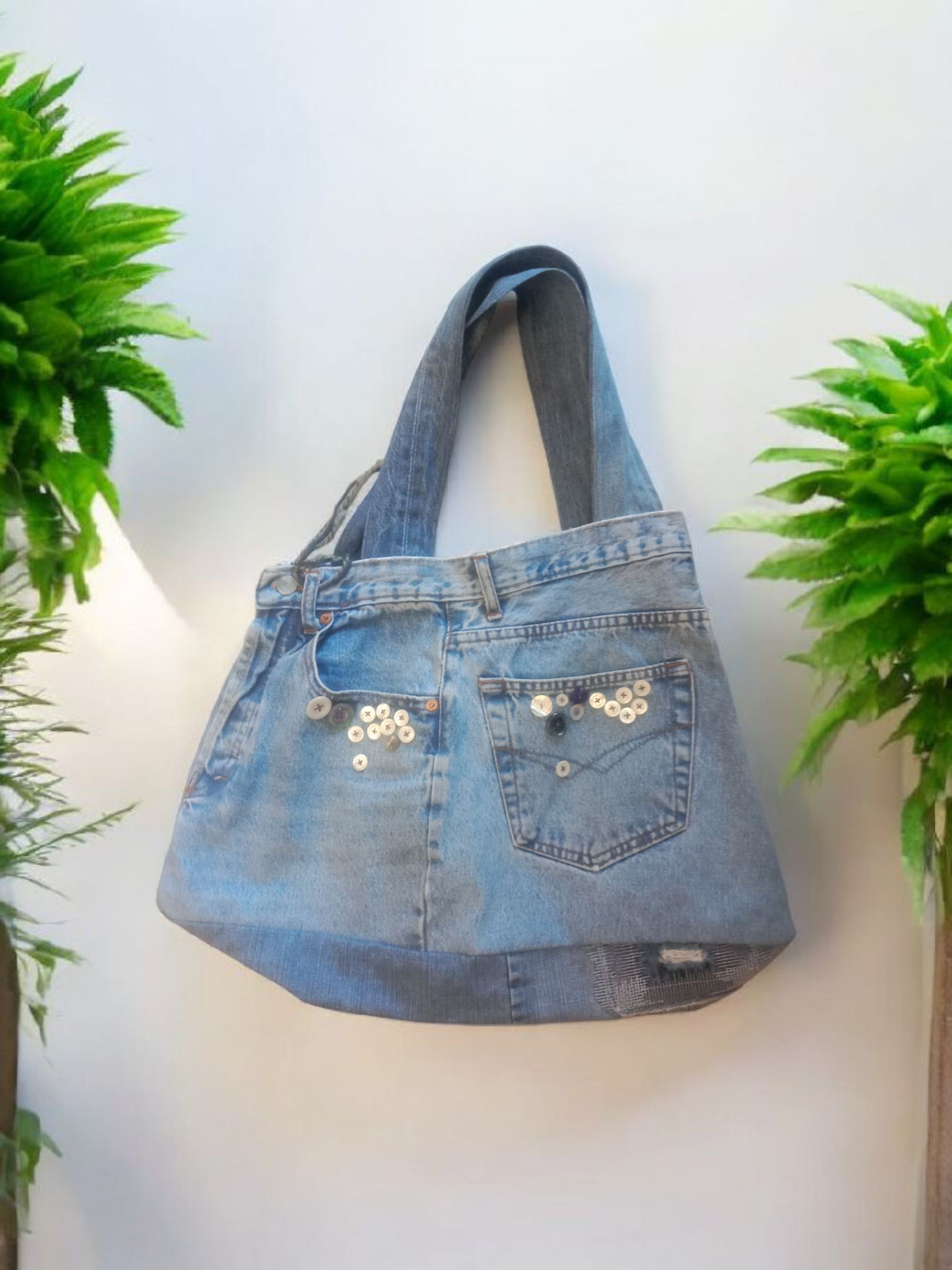 Découvrez le confort et l'élégance du sac à main artisanal en jeans avec 2 anses pratiques et de nombreuses poches extérieures et une grande poche intérieure. Gardez tout ce dont vous avez besoin à portée de main avec style et originalité.