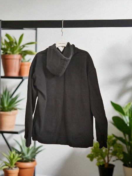 Optez pour un style audacieux avec ce sweat à capuche noir de Pull and Bear. Conçu en polyester et coton, il allie confort et résistance pour suivre vos aventures urbaines. Sa coupe longue en taille L offre une silhouette décontractée qui ose affirmer votre personnalité avec sa poche sur le ventre. Parfait pour un look affirmé, ce sweat en très bon état est un incontournable pour sortir du lot avec confiance.