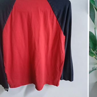Vous cherchez un ajout élégant à la garde-robe de votre enfant ? Découvrez ce t-shirt à manches longues de GAP Kids, disponible en bleu marine et rouge. Avec une taille XL, ce tee shirt convient parfaitement aux enfants de 12 ans et il est dans l'ensemble en bon état. Veuillez noter que le design peut montrer quelques signes d'usure, mais cela ajoute au look vintage. Ajoutez cette pièce polyvalente à la collection de votre enfant dès aujourd'hui !