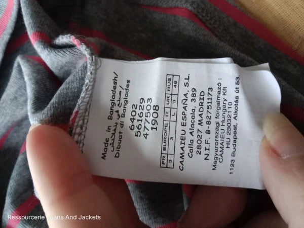 Restez au chaud et élégant dans notre t-shirt à manches longues rayé gris et rose de Camaïeu. Fabriqué à partir des meilleurs matériaux, ce t-shirt présente un design rayé intemporel qui ajoute une touche chic sans effort à n'importe quelle tenue. La taille 3 assure un ajustement confortable et flatteur pour toutes les morphologies. Que vous vous prélassiez à la maison ou que vous partiez pour une journée décontractée, ce t-shirt est un ajout polyvalent à votre garde-robe. Achetez maintenant sur Jandjtextiles et rehaussez votre style de tous les jours avec cette pièce incontournable. Veuillez noter que nos prix sont déjà incroyablement bas et que nous n'acceptons donc aucune réduction supplémentaire. Assurez-vous d'avoir lu nos politiques vendeur avant de faire un achat.