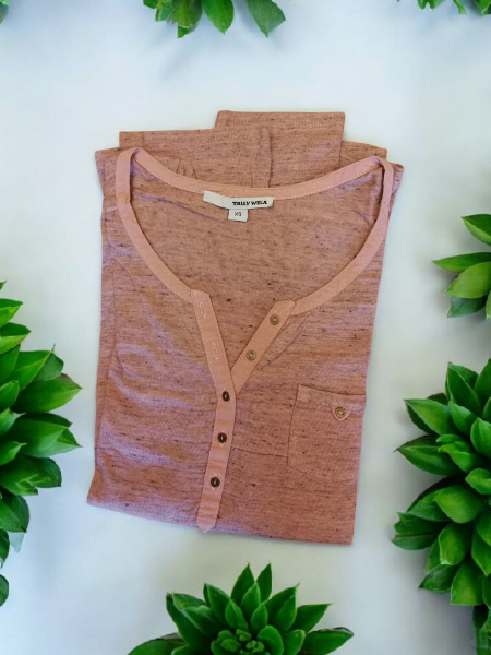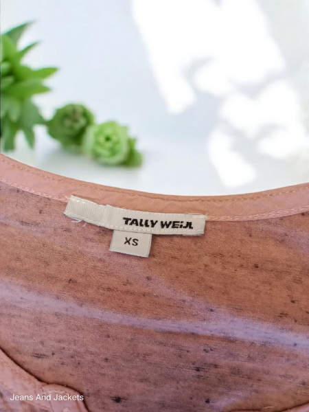 Mettez une touche de couleur à votre garde-robe avec ce tee shirt vieux rose de la marque Tally WEJL. En taille XS, il possède une encolure ornée de boutons et peut être porté avec les manches 3/4 ou longues. Ajoutez-le à votre collection pour un look chic et amusant.