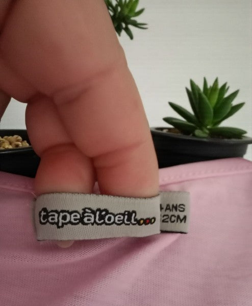 Ce tee-shirt rose à manches longues, taille 14 ans de la marque Tape à l'œil, combine audace et confort. Parfait pour affirmer un style unique, il est en très bon état, prêt à accompagner des looks pleins de caractère. Osez la différence avec cette pièce qui ne passe pas inaperçue.