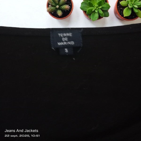 Adoptez un look décontracté et stylé avec ce tee-shirt manches longues noir de la marque Terre de Marins. Sa taille S et son tissu légèrement pelucheux ( dû à son utilisation) offrent un confort tout doux parfait pour vos journées fraîches. Même sans étiquette de composition, ce basique malin promet chaleur et douceur pour accompagner toutes vos aventures. À porter sans modération !